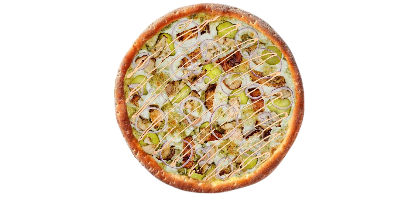 секретный соус, сыр моцарелла, мясо гриль, огурец маринованный, лук красный, соус гриль