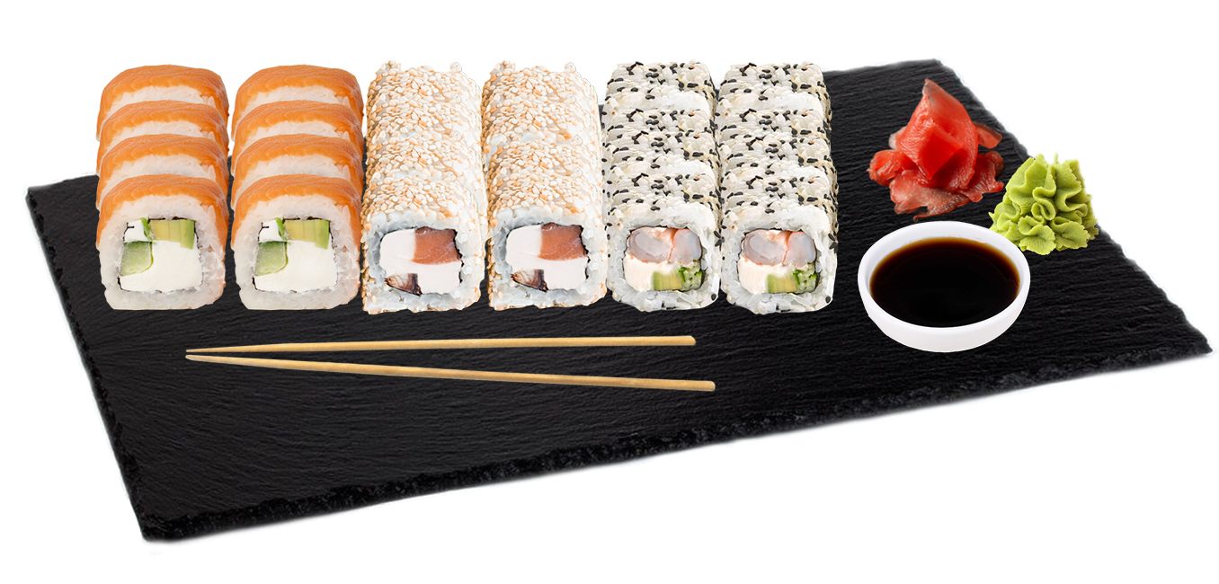 Роллы Филадельфия, Аризона, Калифорния, соевый соус, имбирь, васаби | 24 шт.